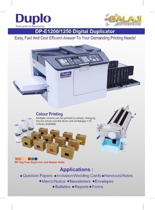 The DP-E1250 combines advanced technology with cost-effectiveness, providing a premium solution for organizations needing reliable, high-volume duplication in a budget-friendly package. Balaji Enterprises is an Authorized Partner Duplo (Techmart Digital).